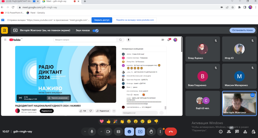 Радіодиктант національної єдності, присвячений до Дня української писемності та мови, відбувся сьогодні об 11:00 за київським часом. Брали участь у ньому і наші учні та дорослі. Всього долучилося до написвння 88 учасників. Мета радіодиктанту — об’єднати якомога більше людей навколо України в усьому світі. Він покликаний не перевіряти грамотність учасників всеукраїнського флешмобу, а написати Радіодиктант національної єдності – 2024 разом із тисячами людей по всьому світу. Суспільне Мовлення надало усі можливі формати для участі в Радіодиктанті: трансляції на радіо, телеканалі та диджитал-платформах. Трансляція Радіодиктанту пройшла на хвилях «Українського радіо» та радіо «Культура», а також в ефірі телеканалу «Суспільне Культура». Усі охочі також мали можливість слухати диктант онлайн, зокрема на YouTube-каналі «Українського радіо» та Facebook-сторінках Суспільного. І це дуже добре . Бо через технічні негаразди наш навчальний заклад використав три джерела транслювання. Цьогоріч текст диктанту підготувала письменниця Оксана Забужко, він називається «Магія голосу».Читав диктант буде поет і військовий Павло Вишебаба.