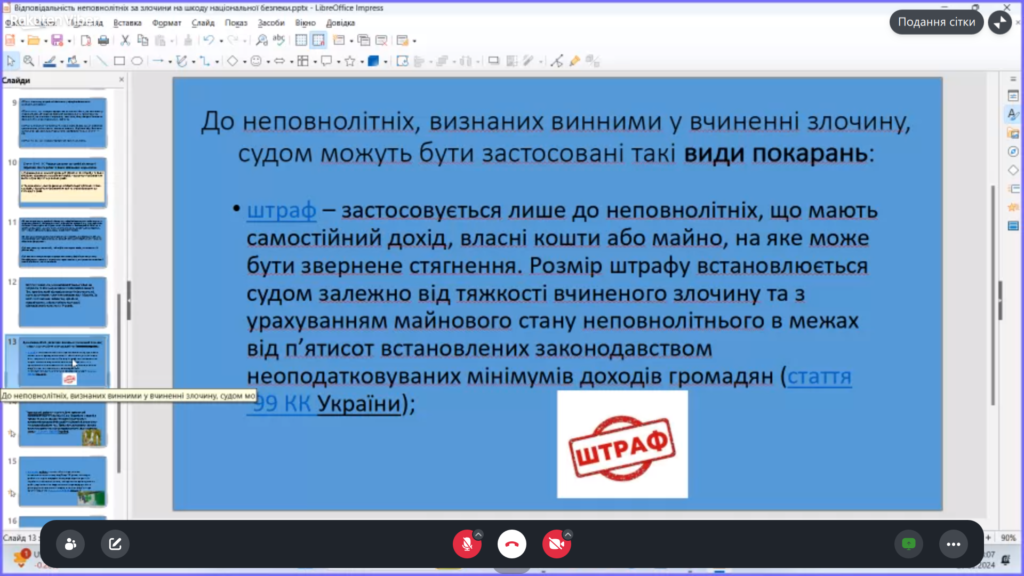 Проведено обговорення причин, які можуть спонукати молодь до участі у протиправних діях, та наслідків таких вчинків як для особи, так і для держави.