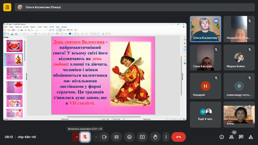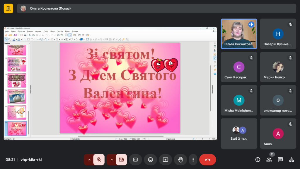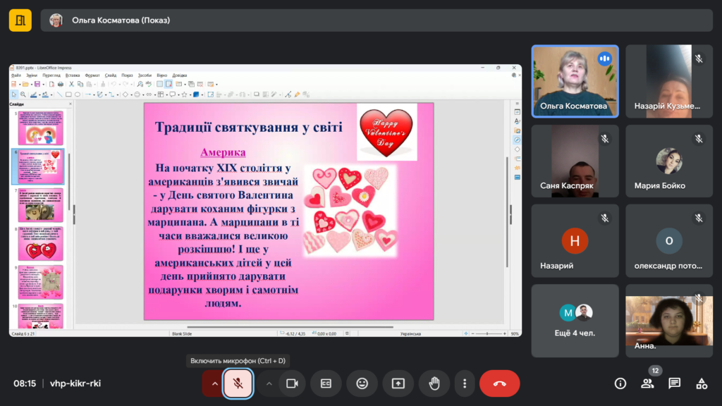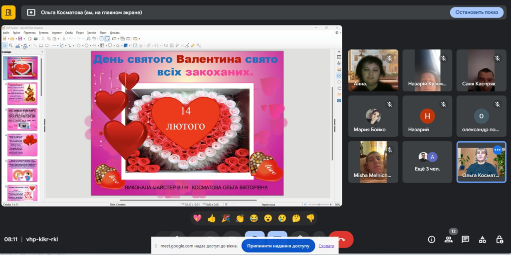 Майстер розповіла здобувачам про це свято, яке присвячене до Дня святого Валентина, святу, яке традиційно вважається днем всіх закоханих. Ми з здобувачами обговорили історію цього свята, його традиції та значення у сучасному світі.