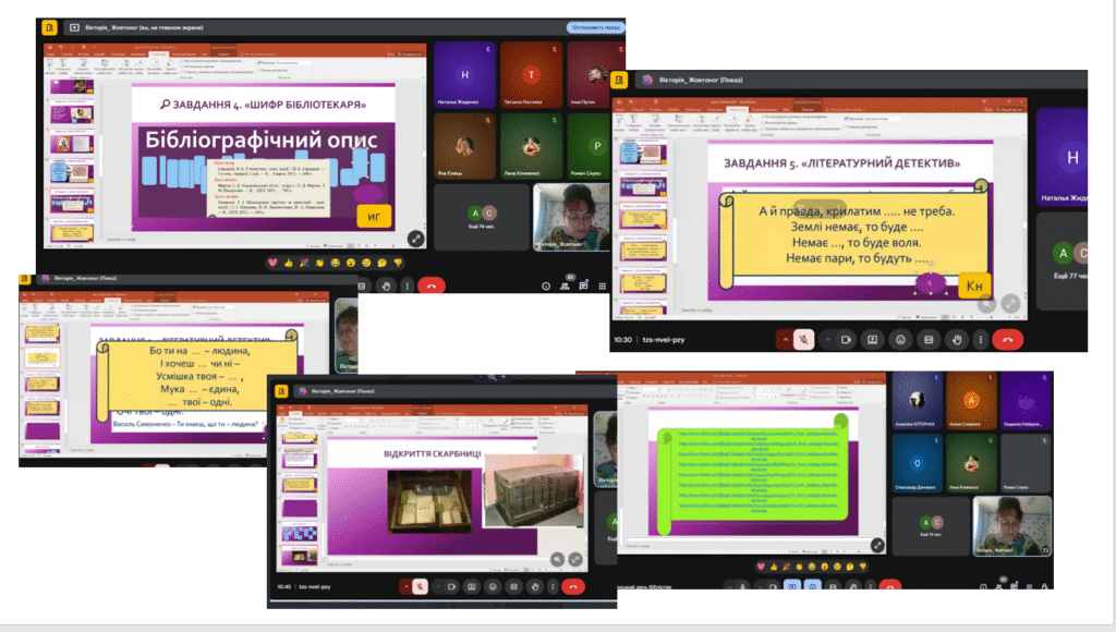 Я мала на меті зацікавити молодь сучасною та класичною літературою; розвинути навички командної роботи; стимулювати пошукову діяльність та креативне мислення; популяризувати бібліотеку як джерело знань і «скарбницю» культури. Впродовж заходу студенти мали завдання — пройти випробування, знайти підказки та відкрити код від скарбниці бібліотеки». Цього дня здобувачі розгадували літературні ребуси, вгадували головного героя, складали літературні пазли, розшифровували термін, шукали загублені слова. У фіналі гри знайшли скарб : рекомендації про нові книги сучасних авторів у вигляді відеороликів. Наші читачі довели, що справжні скарби — не в скринях із золотом, а в книгах, які дарують нам знання, силу думки й багатство уяви.