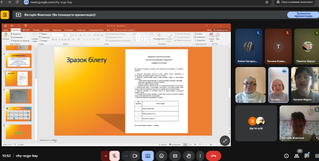 Сьогодні, 31 грудня, у нашому навчальному закладі відбулася державна кваліфікаційна атестація студентів гр №32 з професії «Кухар» на чолі з майстром в/н Марич Н.Й . Розпочала ДКА методист НМЦТУ в Херсонській області Халявко Тетяна Михайлівна. В своїй промові вона побажала студентам скласти цей іспит з найкращими результатами, привітала всіх присутніх з прийдешнім Новим роком. Також до слова приєднався директор Сирко Сергій Володимирович,який побажав випускникам подальших успіхів у професійній діяльності, впевненого кроку в доросле життя. В цілому атестація пройшла в робочій , зосередженій та доброзичливій атмосфері. Здобувачі освіти відповідально підійшли до виконання завдань, продемонстрували самостійність, уважність і зацікавленість у виконанні своєї роботи. Саме ця ДКА підтвердила готовність студентів до самостійної професійної діяльності.