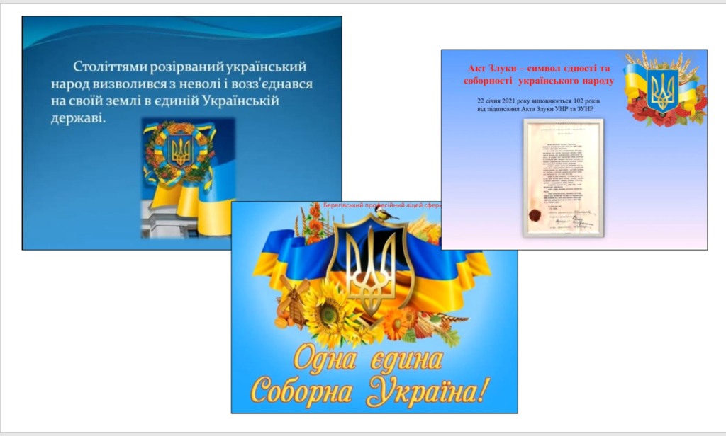 Сьогодні 22 січня у групі #22 з професії «Кухар» відбулася класна година до Дня Соборності України. На заході згадали історію проголошення Акту Злуки Української Народної республіки , а також , що це свято символізує єдність українських земель і народу та нагадує про спільну історію та прагнення українців до незалежності.