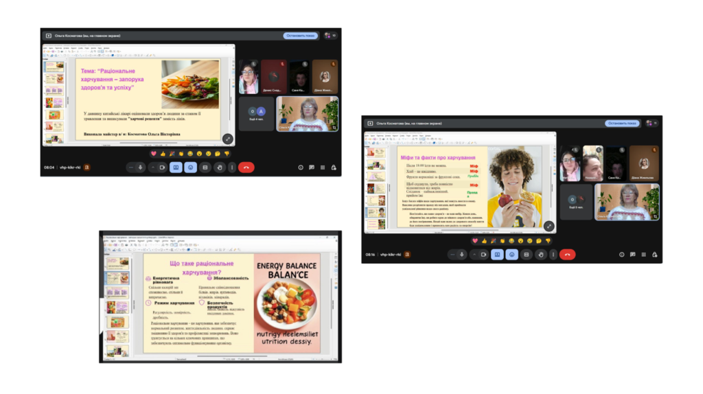 Під час заходу здобувачі освіти ознайомилися з основними принципами раціонального харчування: енергетичною рівновагою, збалансованістю раціону, режимом прийому їжі та безпечністю продуктів.